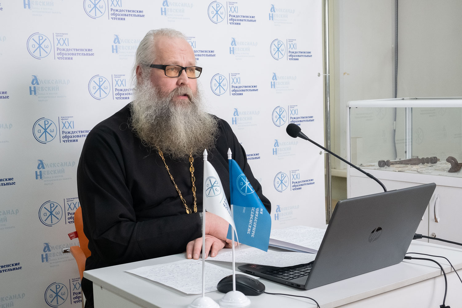 Участие во встрече приняли и педагоги из разных территорий края, и представители духовенства епархии. С докладом на площадке выступил протоиерей Александр Глушанков, штатный священник храма святого благоверного князя Александра Невского.