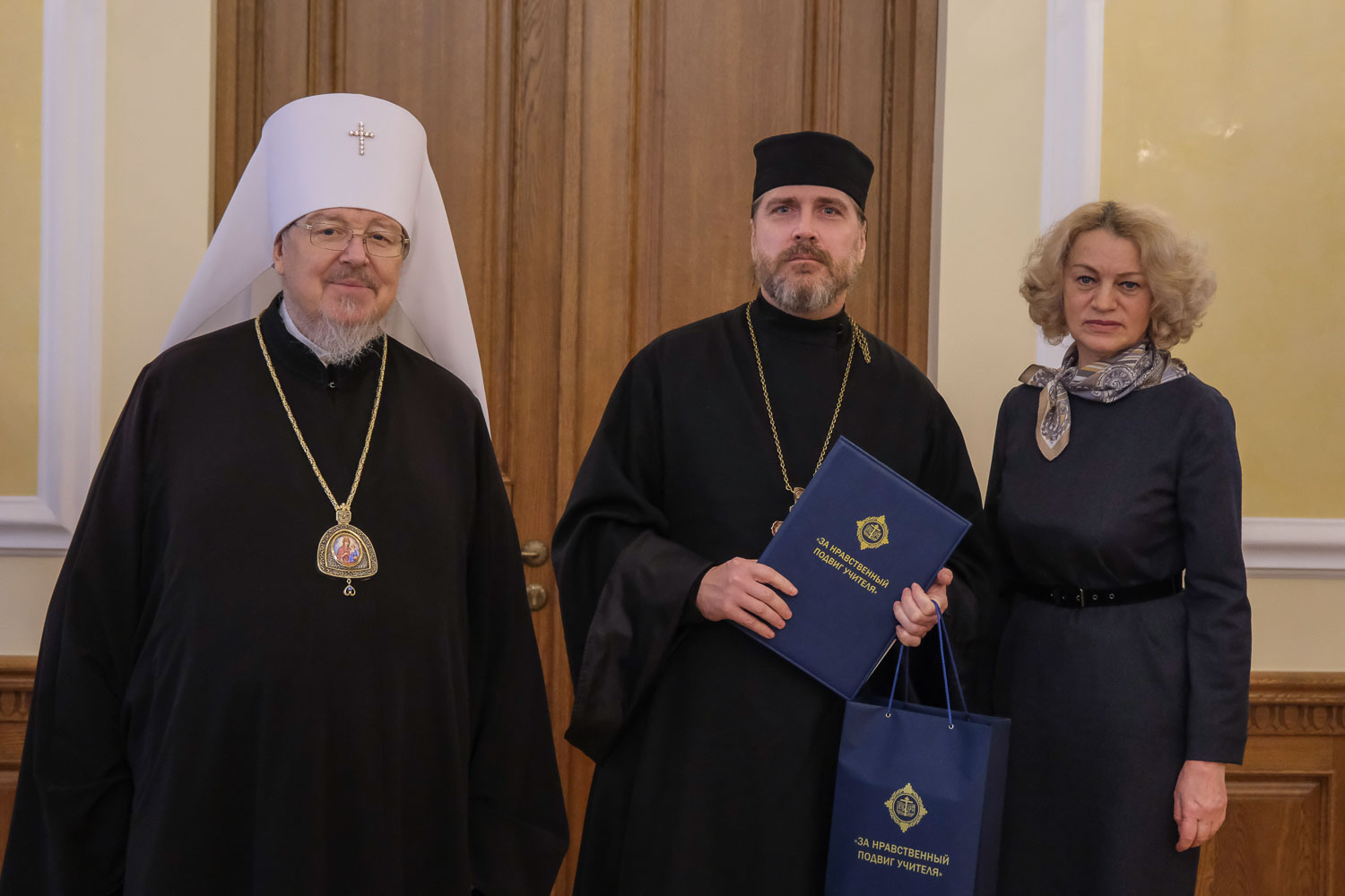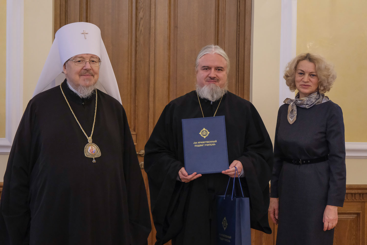 Награды II (межрегионального) этапа XVI Всероссийского конкурса в области педагогики «За нравственный подвиг учителя» по Сибирскому федеральному округу победителям и обладателям поощрительных призов вручили митрополит Красноярский и Ачинский Пантелеимон и министр образования Красноярского края Светлана Маковская. Также благодарственные письма Полномочного представителя Президента Российской Федерации в Сибирском федеральном округе за активное участие в конкурсе «За нравственный подвиг учителя» и большой вклад в духовно-нравственное и гражданско-патриотическое детей и молодёжи лауреатам конкурса передал главный федеральный инспектор по Красноярскому краю Сергей Блинов.