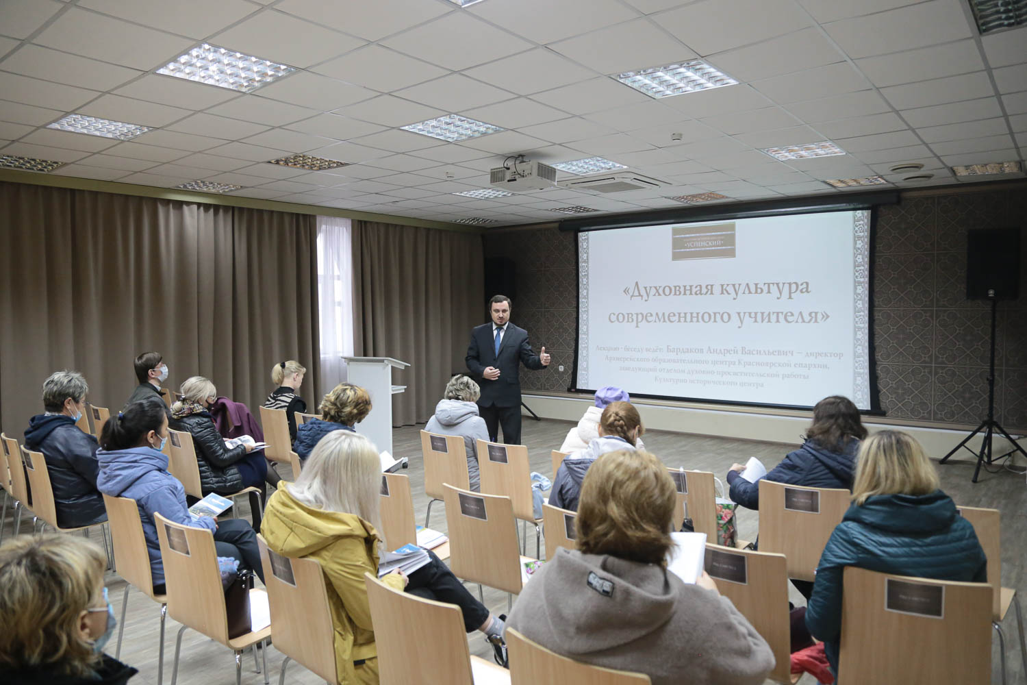 Лекцию провёл директор Архиерейского образовательного центра Красноярской епархии и Красноярской региональной общественной организации духовно-нравственного возрождения Сибири «Ладанка», член Общественной палаты края Андрей Бардаков.