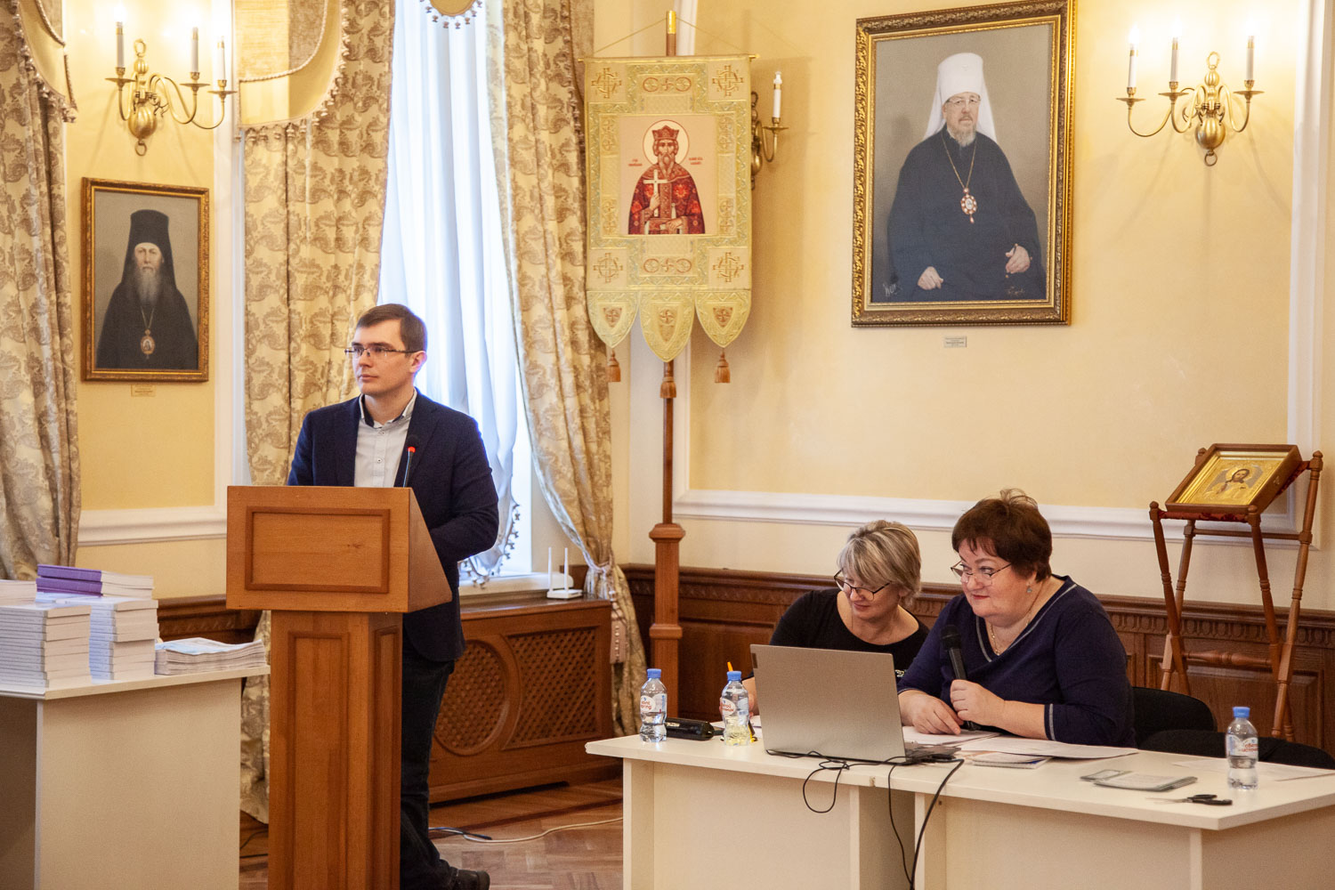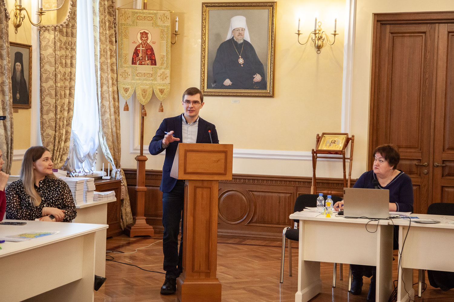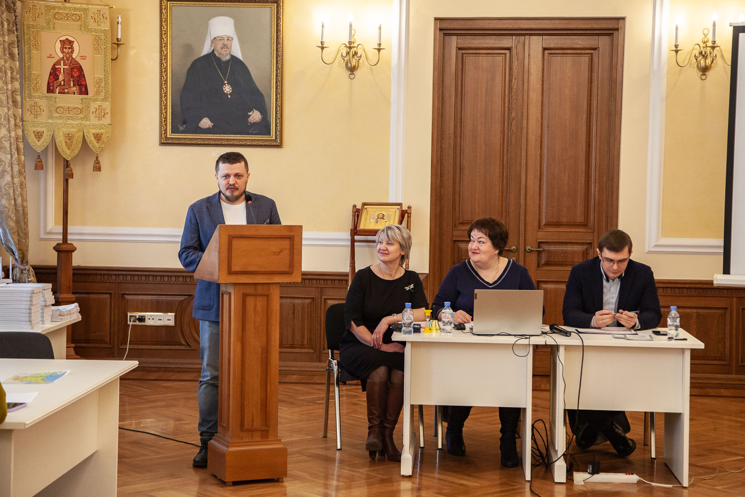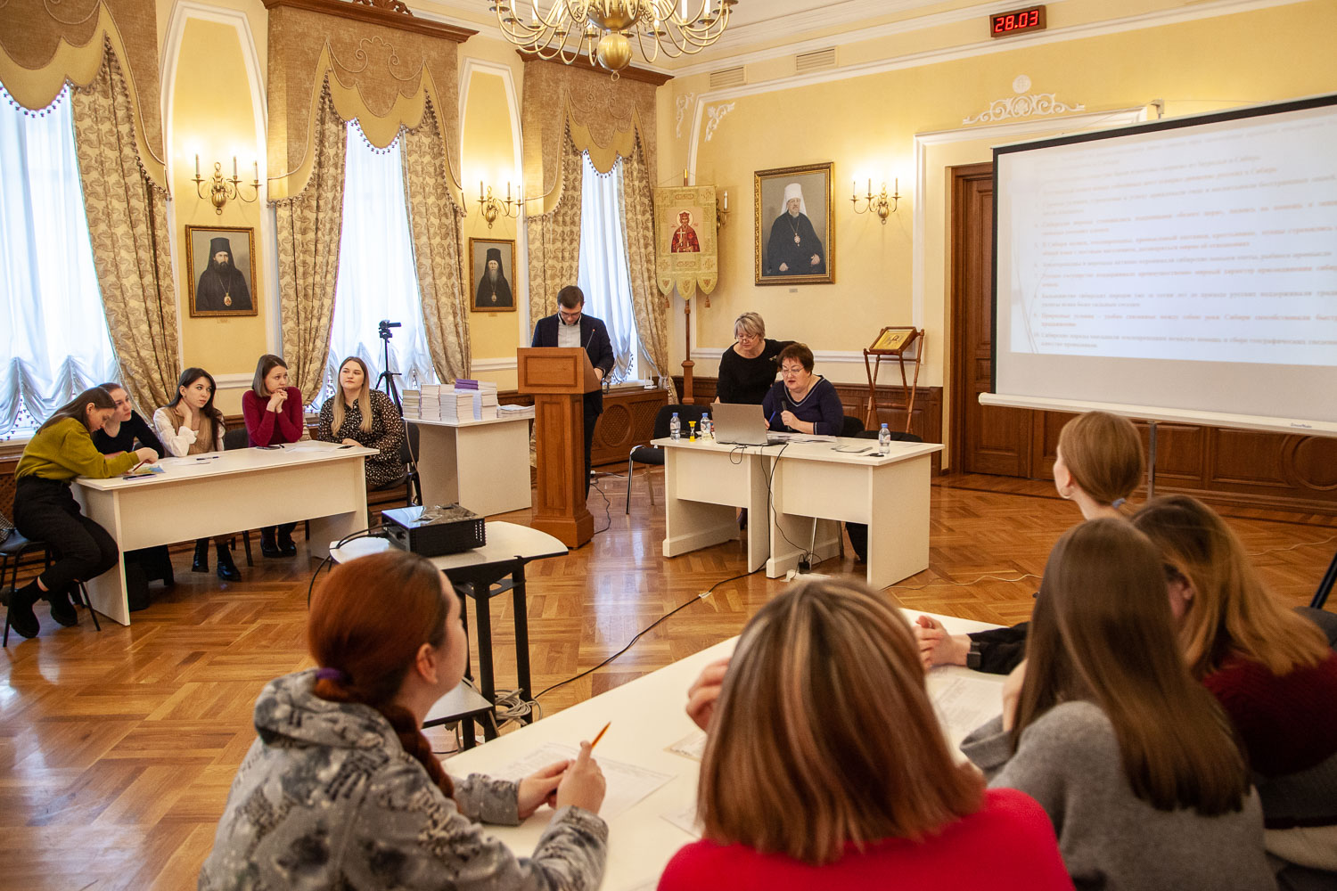 Модерировали и судили игру участники её разработки — заместитель директора АНО ДПО «Красноярский институт развития духовно-нравственной культуры» Елена Пригодич и заместитель директора по учебно-воспитательной работе средней школы № 12 города Красноярска, кандидат исторических наук Александр Дементьев.