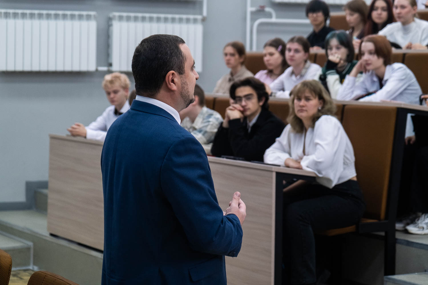 Директор Архиерейского образовательного центра, заместитель председателя Общественной палаты Красноярского края Андрей Бардаков обсудил со студентами тему духовно-нравственных ценностей.
