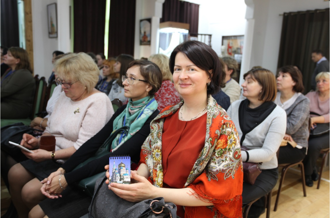 Наш край на конференции представляла кандидат культурологии, педагог дополнительного образования Кедрового кадетского корпуса Ольга Ногина, которая провела мастер-класс «Трудные темы в преподавании основ православной культуры курса ОРКСЭ и возможности русской литературы в нравственном воспитании школьников» совместно с учителем Петропавловской школы Муромцевского муниципального района Омской области Ольгой Алгазиной.